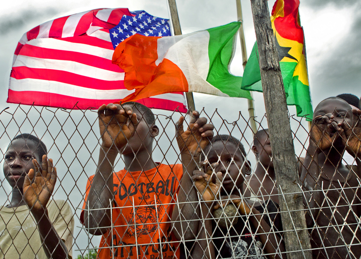 Flags fly at half-staff following the death of President John Atta Mills during a dedication ceremony for a school building Wednesday, July 25 in Adaklu-Abuadi, Volta, Ghana. President Mills died unexpectedly Tuesday, July 24 at the age of 68 from complications related to throat cancer. Vice President John Dramani Mahama was sworn in as his replacement in a ceremony Tuesday in the capital city of Accra.