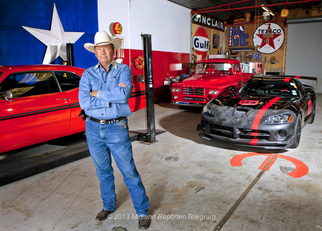 Jerry Cox stands with his collection of Mopars in his garage May 14, 2013. From left, 1972 Dodge Demon, 1958 Dodge D100 pickup, 2008 Dodge Viper ACR.