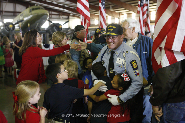 BEST OF 2013 – DURBIN Published January 16, 2014 at 648 × 432 in Best of 2013 Guy Harned, a US Navy veteran, receives hugs and handshakes from Rusk Elementary students during Rusk’s annual Veteran’s Day program Nov. 7, 2013 at the CAF. James Durbin/Reporter-Telegram