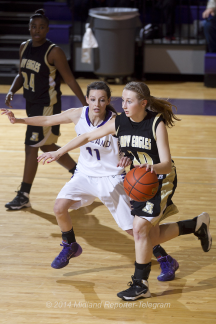 1/4 HS GIRLS BBALL: MHS-ABILENE Published February 5, 2014 at 432 × 648 in 2/5 Strobing high school basketball Midland High’s Miranda Mast (11) covers Abilene High’s Ashley Pierce (10) on Tuesday at Midland High. James Durbin/Reporter-Telegram