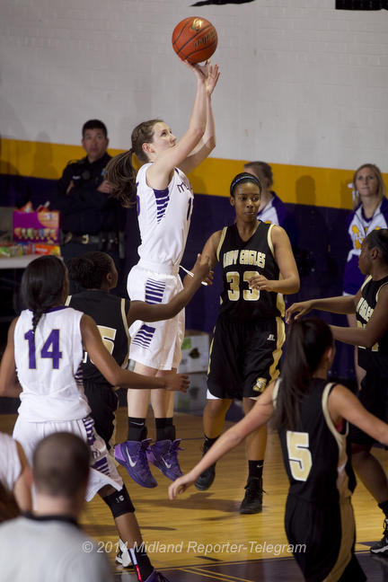 1/4 HS GIRLS BBALL: MHS-ABILENE Published February 5, 2014 at 432 × 648 in 2/5 Strobing high school basketball Midland High’s Aubrie Elliott (13) goes up for a shot against Abilene High on Tuesday at Midland High. James Durbin/Reporter-Telegram