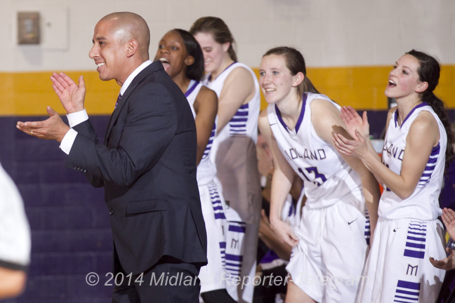 1/4 HS GIRLS BBALL: MHS-ABILENE Published February 5, 2014 at 648 × 432 in 2/5 Strobing high school basketball Midland High girls basketball head coach Wes Torres cheers from the sidelines during the game against Abilene High on Tuesday at Midland High. James Durbin/Reporter-Telegram
