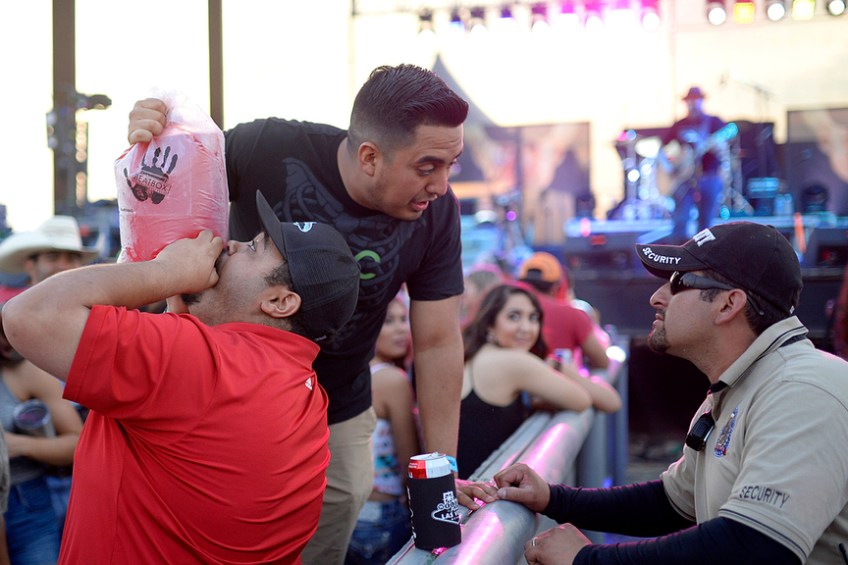 0512_crudefest2016-thursday_jld_07-copy Published December 22, 2016 at 864 × 576 in Best of 2016 Festival participants enjoy a fruity beverage as a security worker encourages them to get off the fence during a Bart Crow performance at the Crude Fest Texas Music Festival Thursday, May 12, 2016. James Durbin/Reporter-Telegram