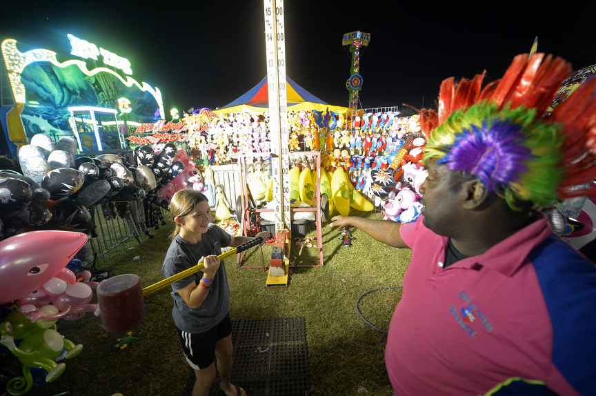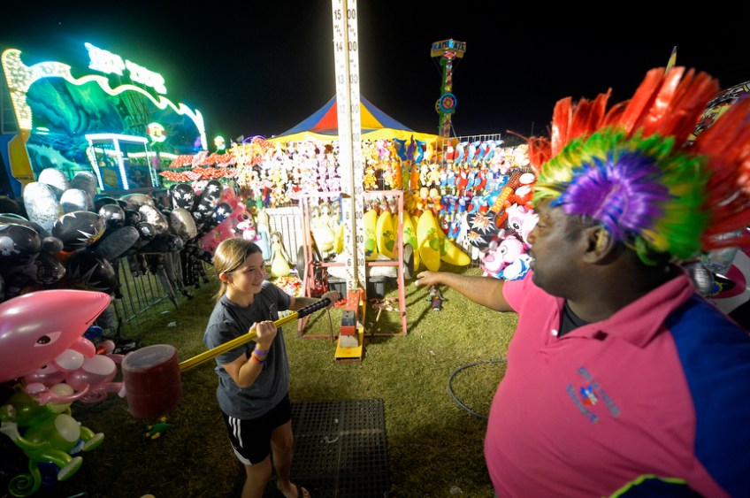 0922_stannsfair2016_jld_01-copy Published December 22, 2016 at 864 × 574 in Best of 2016 DeJay Evans gives Mica Henley, age 11, some advice on how to swing the hammer during the St. Ann’s carnival Thursday, Sept. 22, 2016. James Durbin/Reporter-Telegram