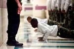 - An officer at the Murphysboro Juvenile Detention Center reaches to assist an inmate during early morning physical training October 2, 2009.