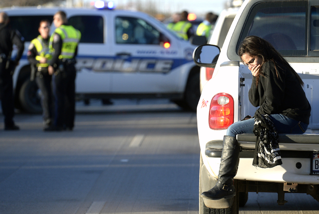 A bystander reacts on the scene of a fatal wreck involving a motorcyclist who evaded a police traffic stop before crashing into a pickup truck near the intersection of Lamesa Rd and Garden Lane.